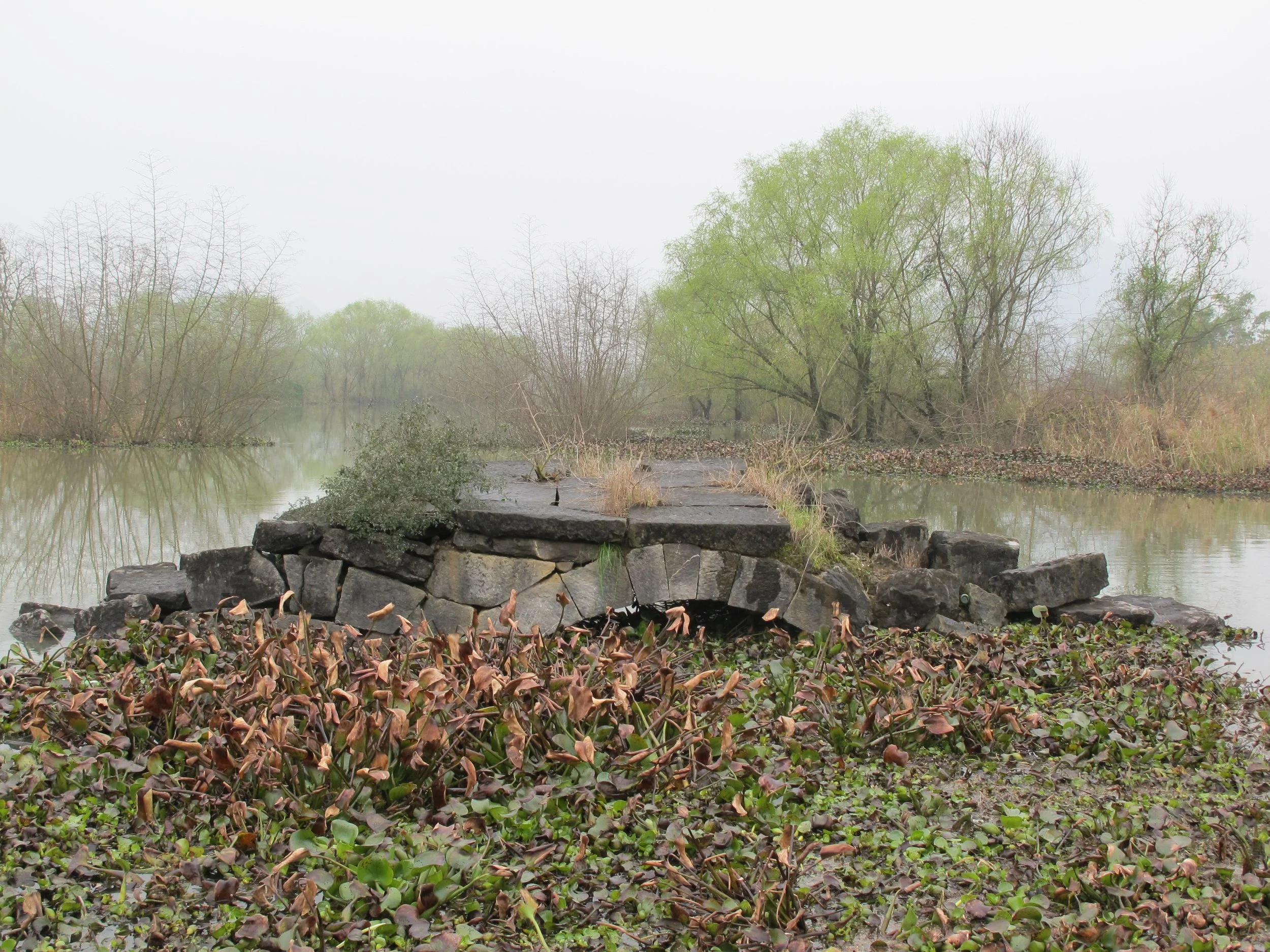 “[Our pilot] managed to conduct us safely into the mouth of a very small canal, fitted with a number of very primitive looking locks, through which we just passed, scraping the sides of the junk as we went… The canal itself being a miserable little gutter-like arrangement winding in and out amongst lime-stone boulders strewn about the plain, and connecting the few ponds formed amongst the rocks.