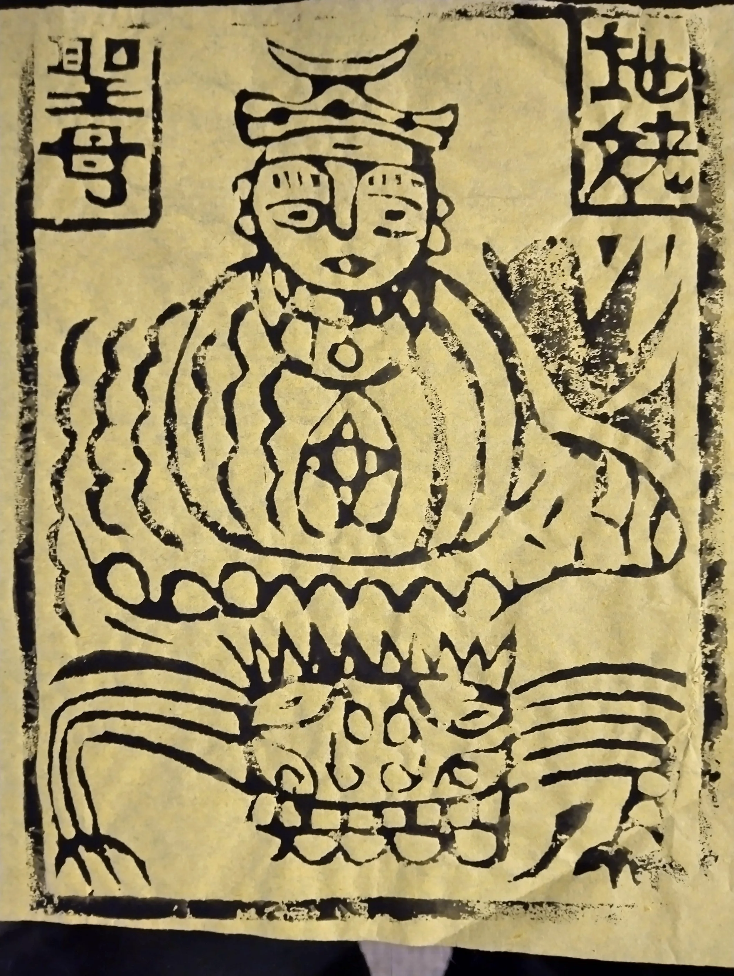 So here are some recently collected zhima prints and blocks. The woodblocks come from an antiques dealer in Kunming, the prints from the Pigsy temple at Xizhuang village, Baoshan (保山西庄猪八戒寺).