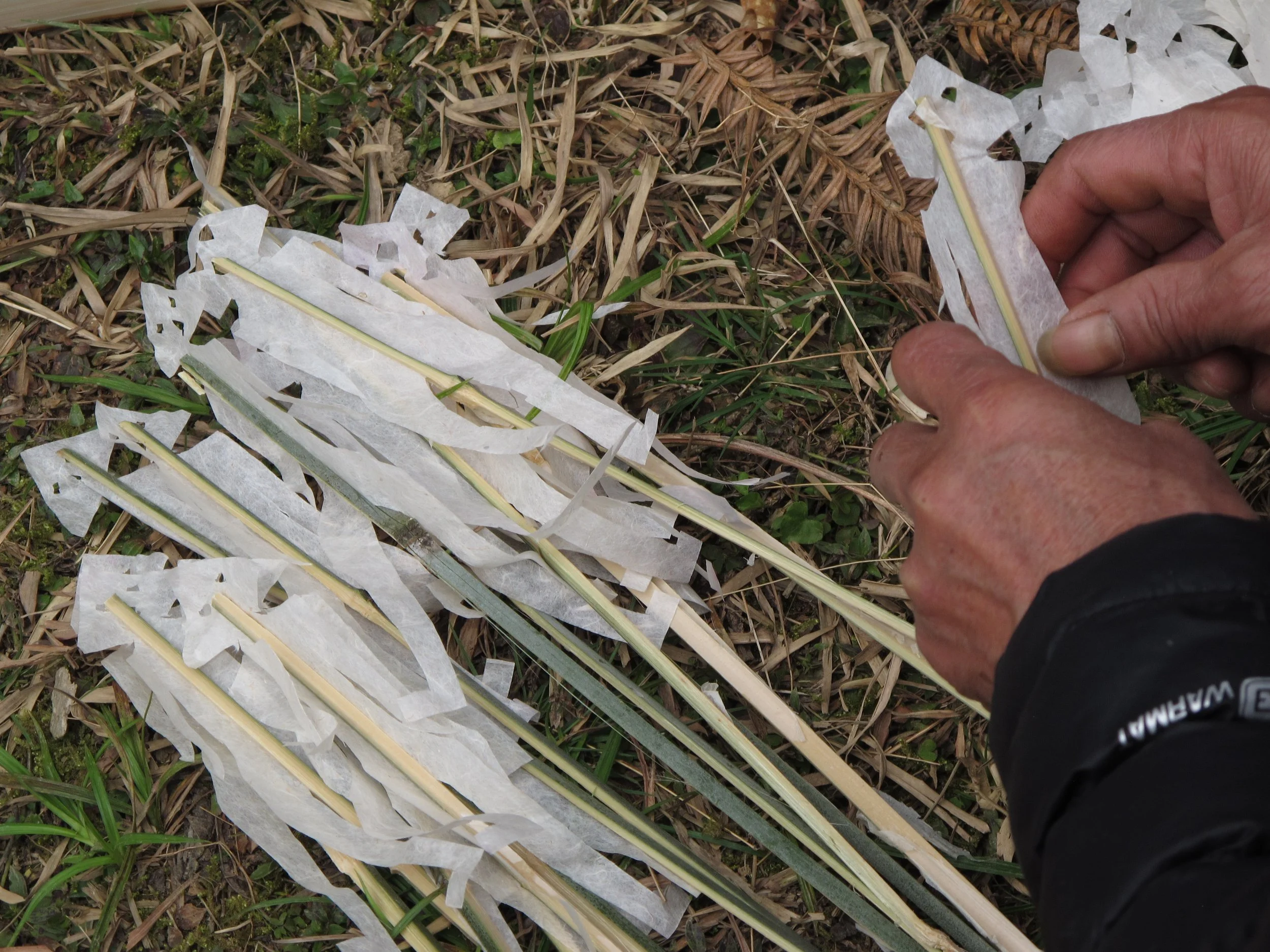According to local researcher Li Maoqing, who is himself Miao, during the Guzang festival “two assistants carry the bronze drum up into the mountains and back to the village, accompanied by a shaman and twelve young men carrying offerings such as pig, rice wine, sticky rice, eggs, fish, a live duck, and people-like papercuts.” When the group arrive at the mountain behind the village, the shaman pounds the ground with a wooden mallet and orders his followers to beat the drum, saying: