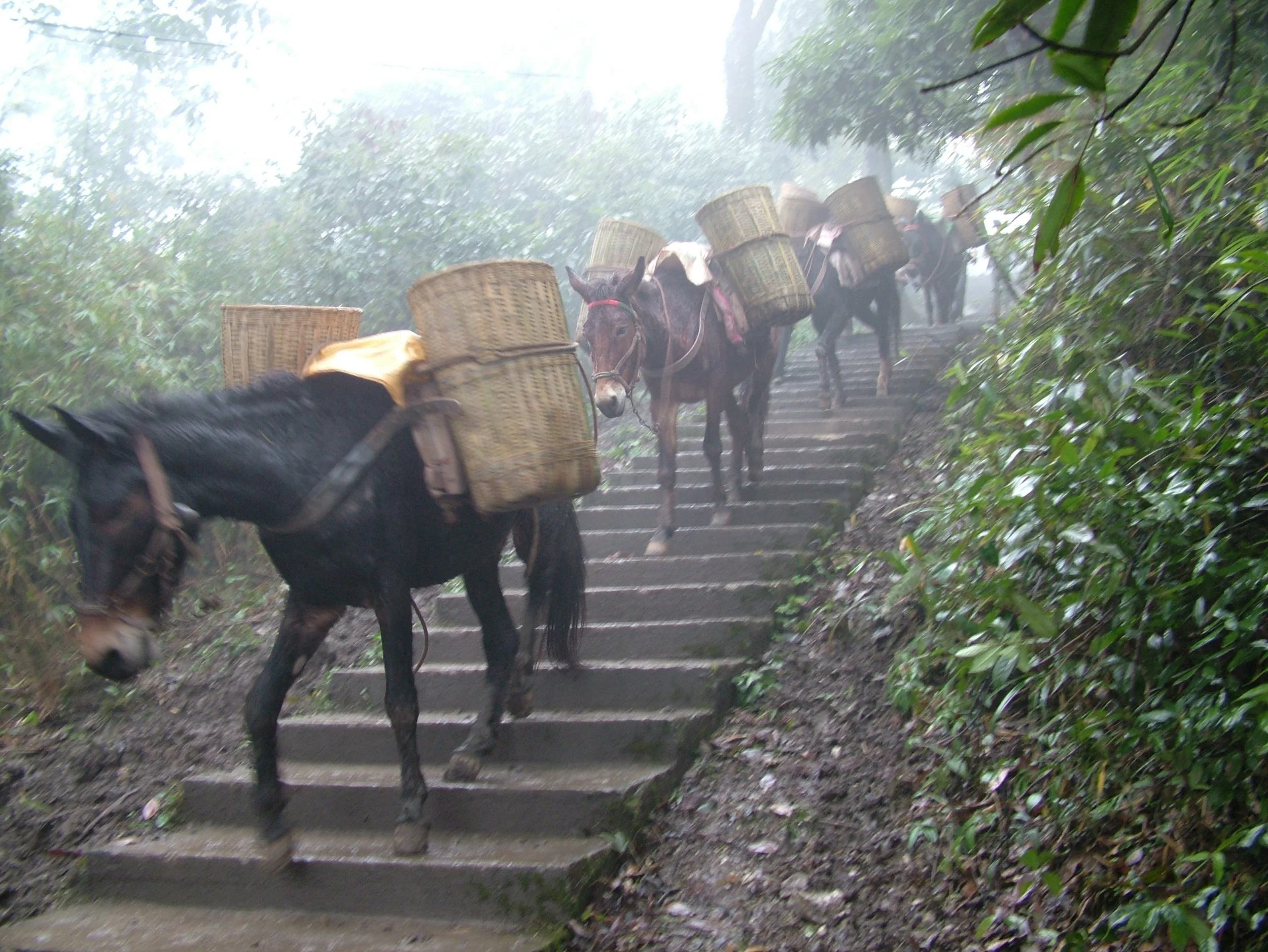 Mule train on one of the easier stretches of steps