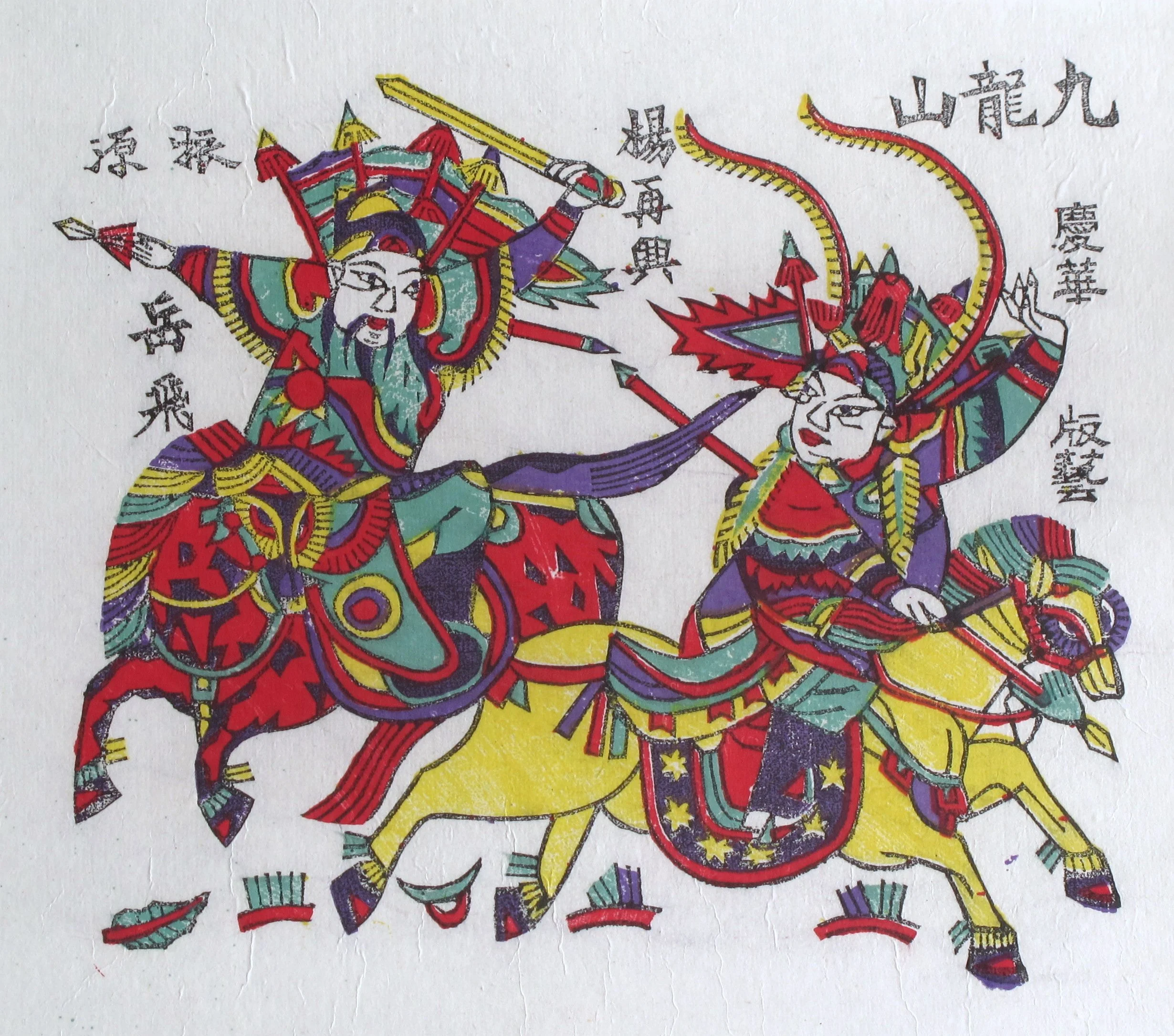 Yue Fei winning over the ferocious bandit Yang Zaixing at Nine Dragons Mountain. Print from Zhuxian Zhen, Henan, where Yue Fei campaigned in 1140