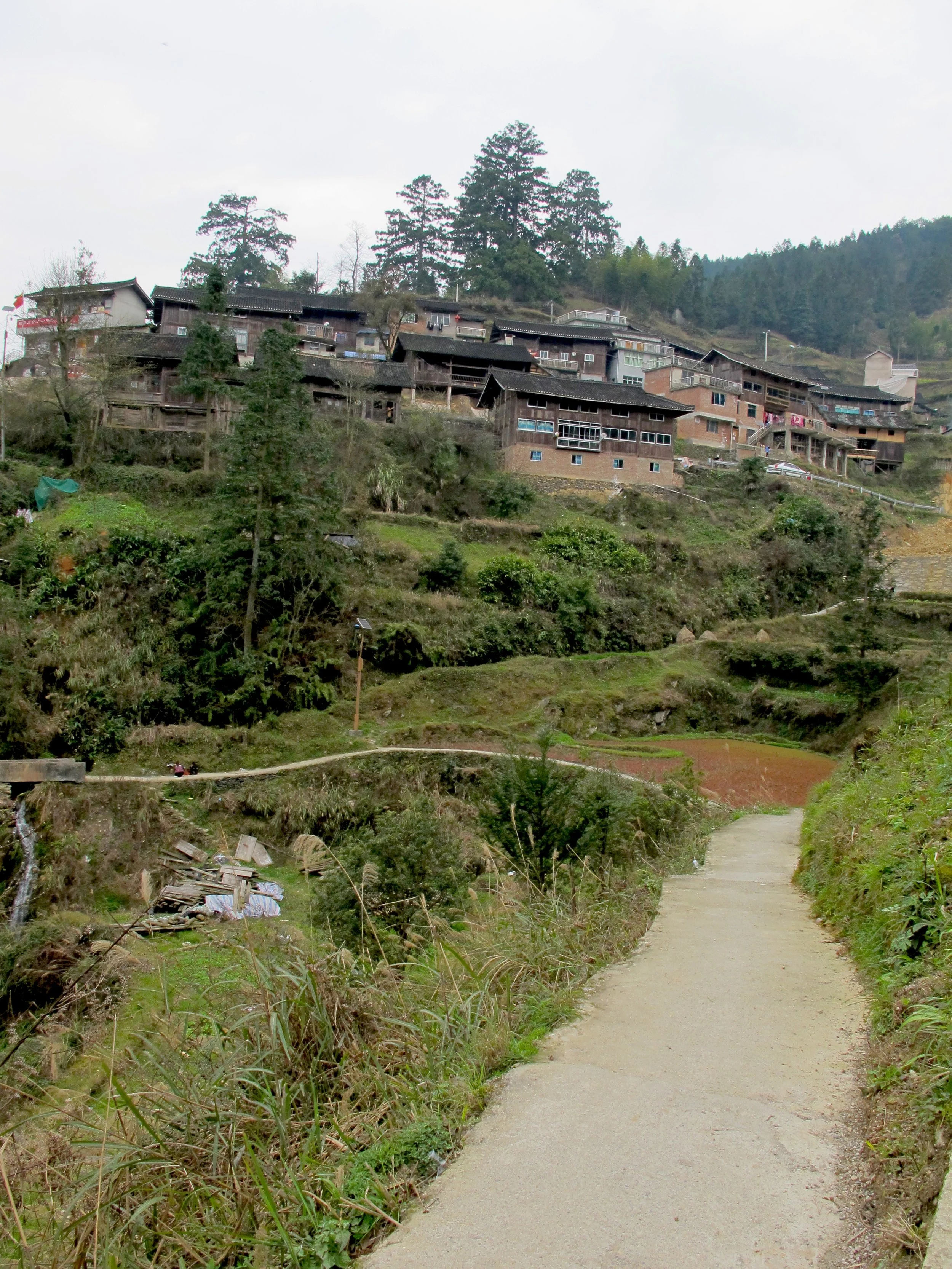 On the day of the ceremony, the dragons are painted pink – a colour which attracts children – and a white rooster is tied up at their heads. White usually represents death in China, but for the Miao white objects form a link between the spirit world and ours; all around Miao villages you see small spirit “bridges” made of tiny bamboo arches covered in white paper.